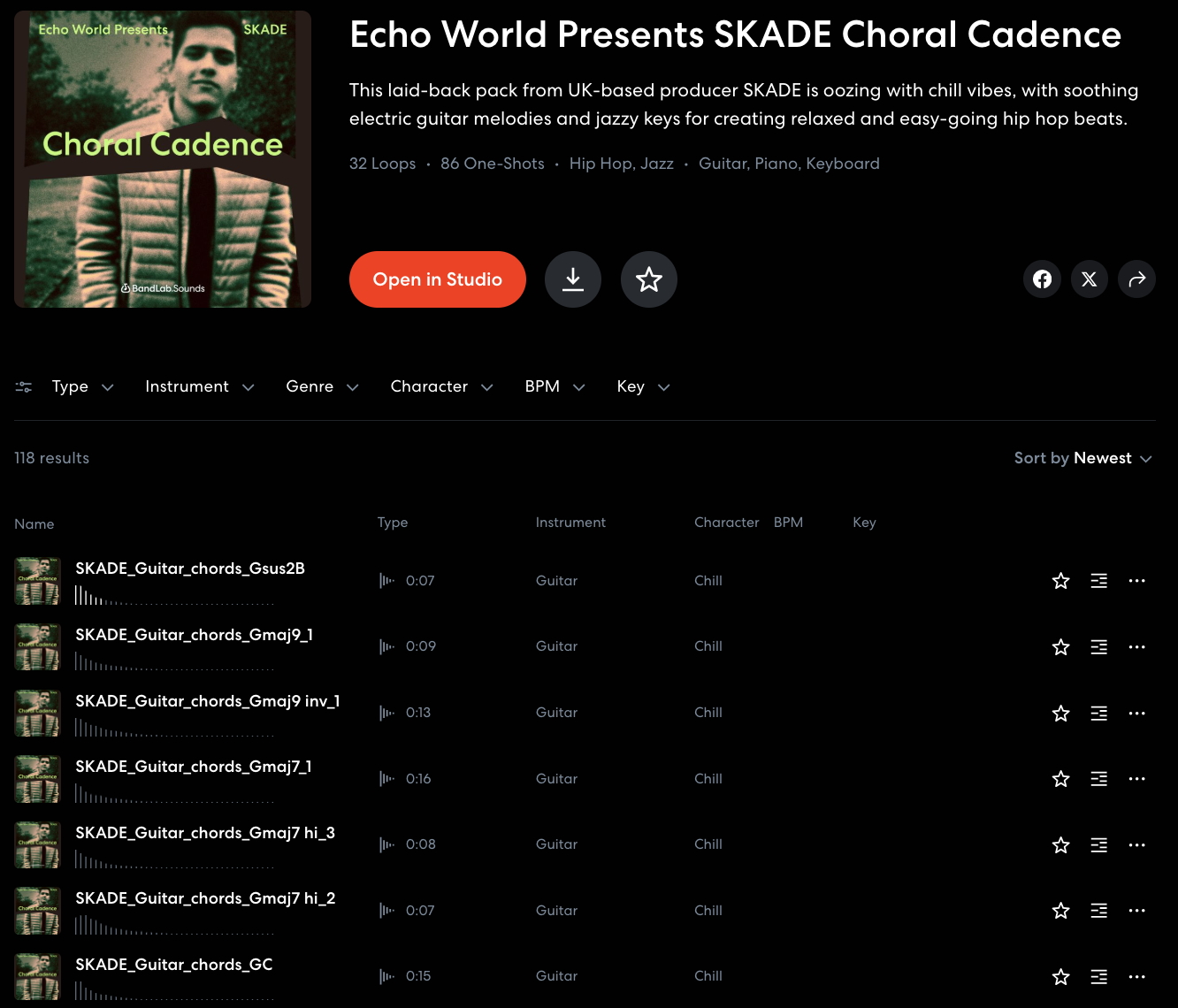 A curated selection of Rhodes, guitar, and drum loop material designed for music production and sound creation, available as a publicly shared pack on BandLab.